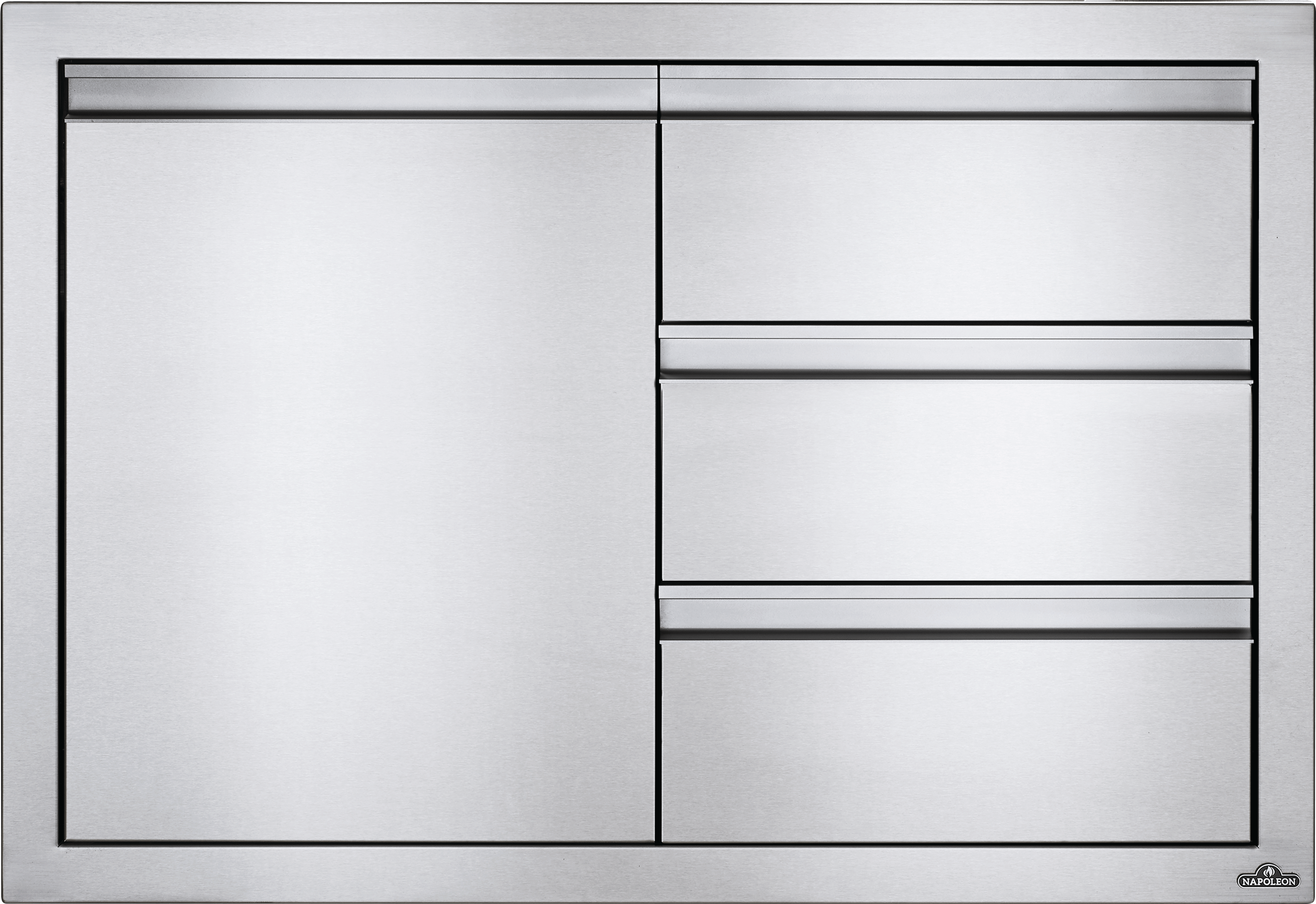 Creating your own custom grill island has never been easier with Napoleon's Built-In Components. Every great outdoor kitchen needs storage; this 36" x 24" built-in component has everything you need for storage. Featuring three drawers and a single large door with storage shelves. The stainless steel construction, soft closing hardware, seamless trim, and anodized aluminum handles provide durability and endless installation possibilities.Read More